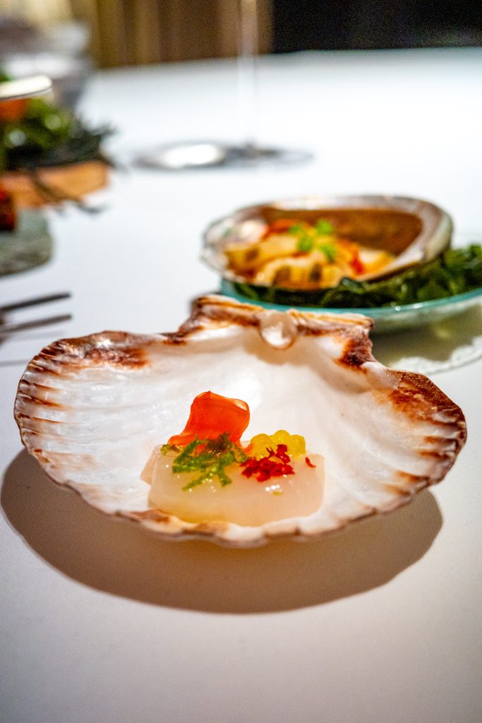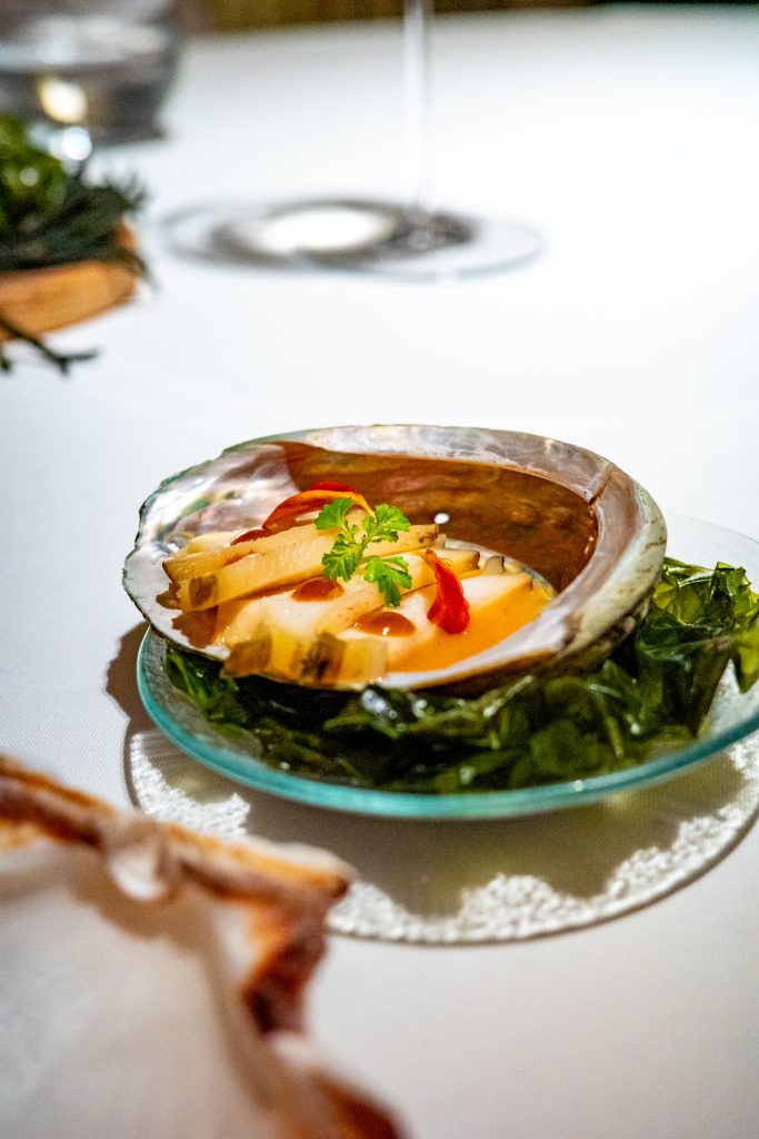 Potem pod ząb wjechał pączek wypełniony mięsem kraba, a po nim rejestry mocy smaku zaczynały zbliżać się do maksimum. Abalone, czyli morski ślimak, pokrojony został w paski i polany emulsją z wątroby. Och, gdybym mógł dostać jeszcze jedną porcję, zjadłbym ją na pewno, a potem jeszcze raz i jeszcze raz.