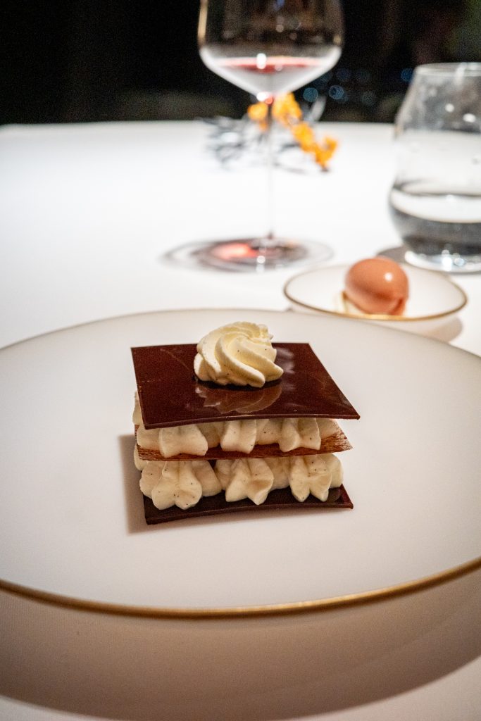 Największy problem z gołębiem widziałem jednak gdzie indziej. Było to pierwsze danie, które oderwało mnie z hiszpańskiego klimatu. Nie pasowało do całego wieczoru, tak jakby pochodziło z innego menu. A deser tylko mnie w tym przekonaniu utwierdził. Wuzetka, z którą związana jest piękna historia Szefa i jego narzeczonej, była po prostu z innej bajki. Zaburzała spójność menu jeszcze bardziej niż gołąb. Choć smakowała mi, to brakowało w niej finezji i czułem jakby zawieruszyła się z innej restauracji. Gdybym dostał ją w bistro, na pewno bym się ucieszył. Jednak nie w Arco.