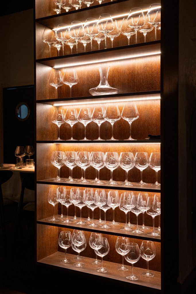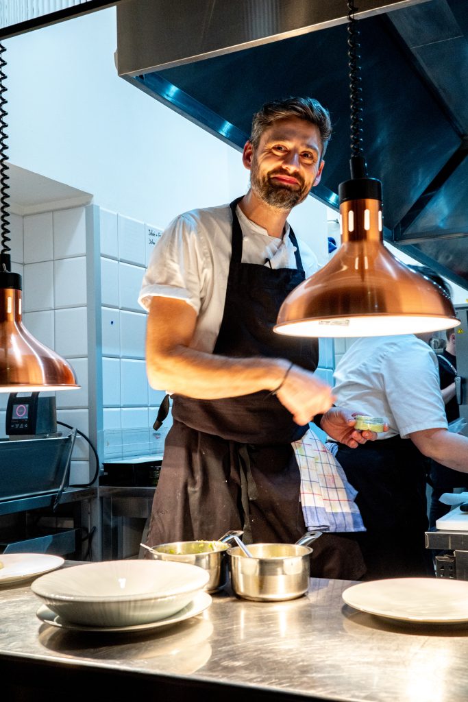 Wchodząc do środka mijamy okno wydawki, przez które widać, jak zespół składa dania na talerzach, które za chwilę trafią na stół. Mówiąc o “zespole” popełniam gigantyczną hiperbolę, ponieważ w kuchni pracują jedynie dwie osoby i tyle samo na sali. Team liczy więc jedynie cztery osoby. Szaleństwo?