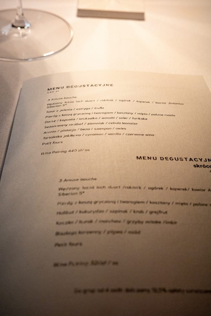 Zanim pierwsze przysmaki z klasycznego menu trafiły na stół, przestudiowałem jeszcze całkiem przyjemną kartę win i szampanów. Zamiast konkretnej butelki wybór padł jednak na wine pairing, który zapowiadał się niezwykle interesująco.