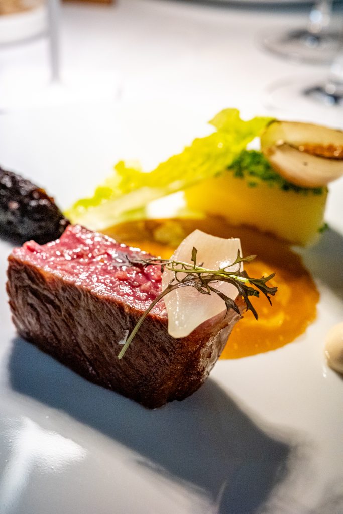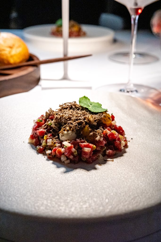 Jako pairing do tatara polane zostało Rocche dei Manzoni Barolo 2021. TO wino w połączeniu z TYM tatarem stworzyło kombinację rewelacyjną. Dodało kwasowości, owocowości i słodyczy zarazem, wybiło leśne aromaty, świetnie współgrało z ostrością i wyniosło tę pozycję w menu na dwa poziomy wyżej. Głosuję, aby kieliszek Barolo stał się nierozerwalną składową dania.