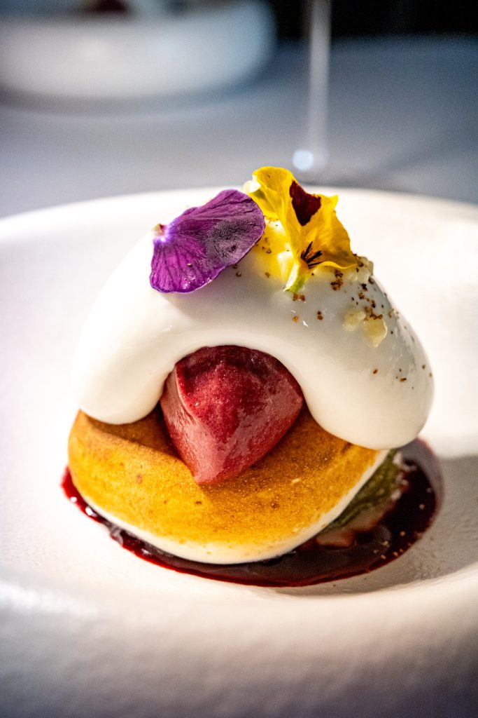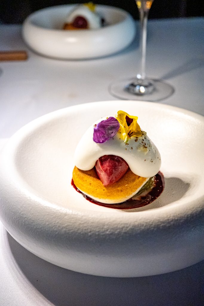 A potem ponowić drugi deser – bezę z musem pistacjowym, aronią i pianą z szampana. Olbrzymią zaletą zarówno tego, jak i poprzedniego deseru było ich nieprzesłodzenie. Pod koniec kolacji, gdy żołądek jest już niemal pełny, zbyt duża ilość cukru może okazać się męcząca. W Rozdziale jest ona zbalansowana w sposób godny wielkich pochwał.